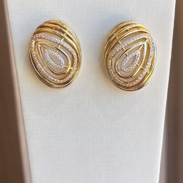 Brinco Oval Liso e Cravejado - Banhado a Ouro