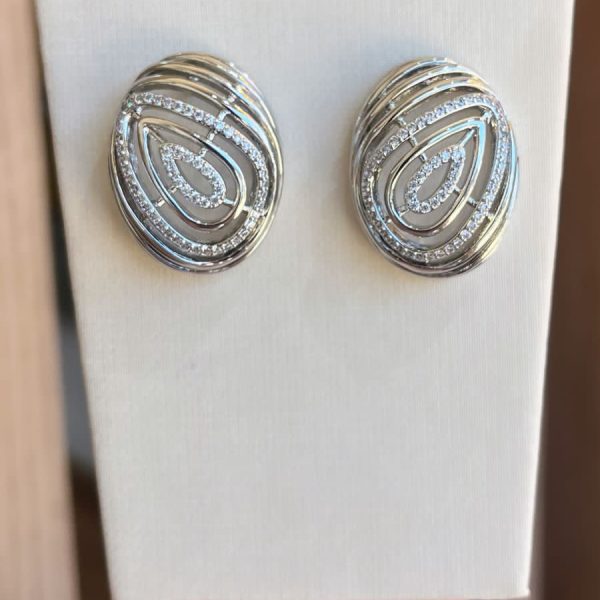 Brinco Oval Liso e Cravejado - Ouro Branco