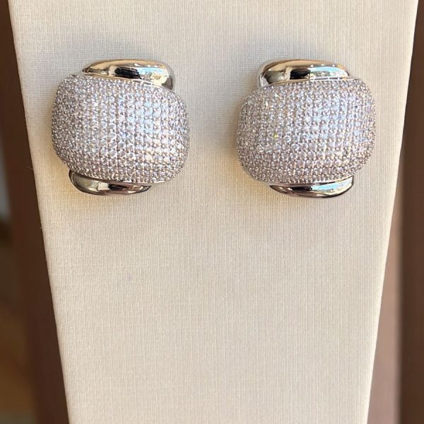 Brinco com design elegante, composto por parte lisa e detalhe cravejado em micro zircônias cristal, com tarraxa. Peça de alta qualidade, ideal para revenda, com excelente aceitação no atacado. Versátil, atende diferentes públicos e ocasiões, sendo uma ótima opção para compor mix de produtos maximalistas.