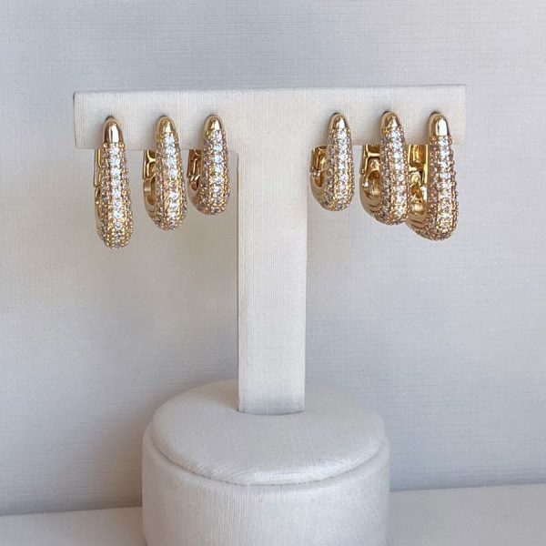 Trio de argolas pequenas com click, modelo com detalhe cravejado em zircônia cristal em formato de cruz.